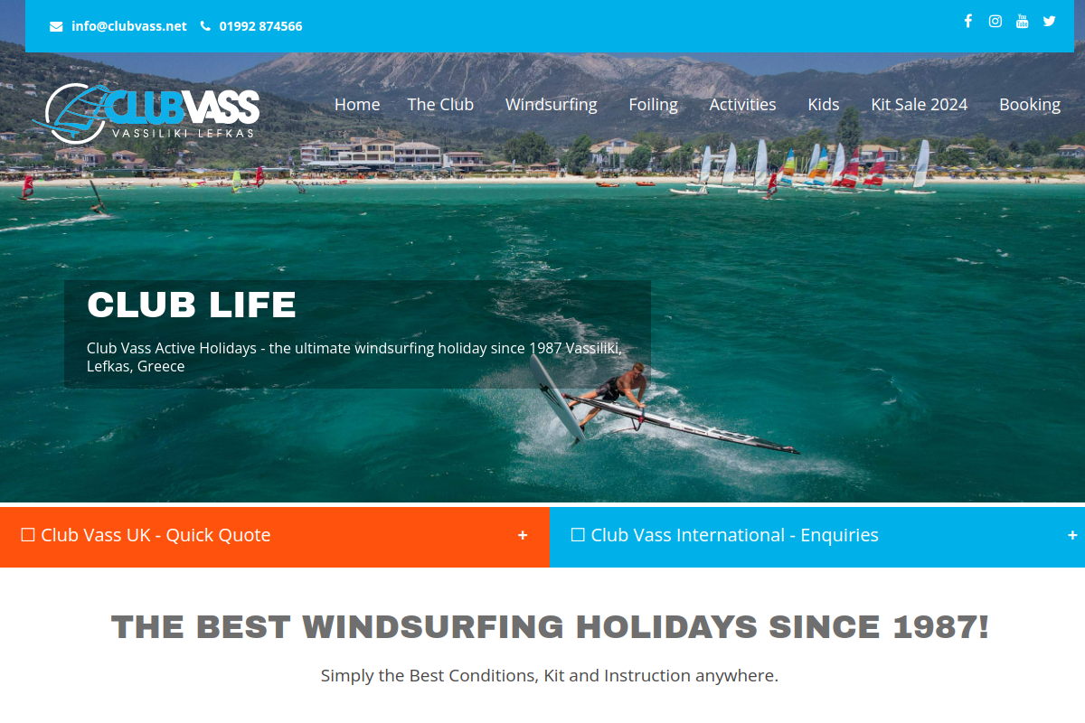 Club Vass in Greece offers comprehensive windsurfing and watersports with top equipment, expert instruction, and diverse activities in an ideal windy location since 1987.